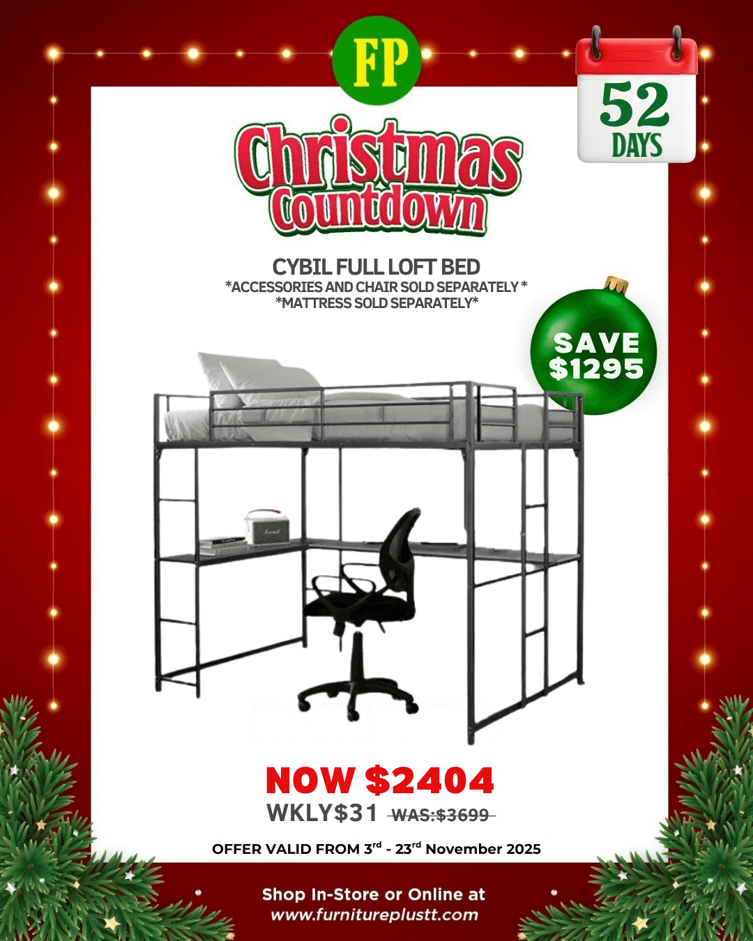 SaleFrom: TT$ 3,699 Original price was: TT$ 3,699.TT$ 2,404Current price is: TT$ 2,404.Weekly on HP TT$ 31Cybil Full Loft BedAdd to cart