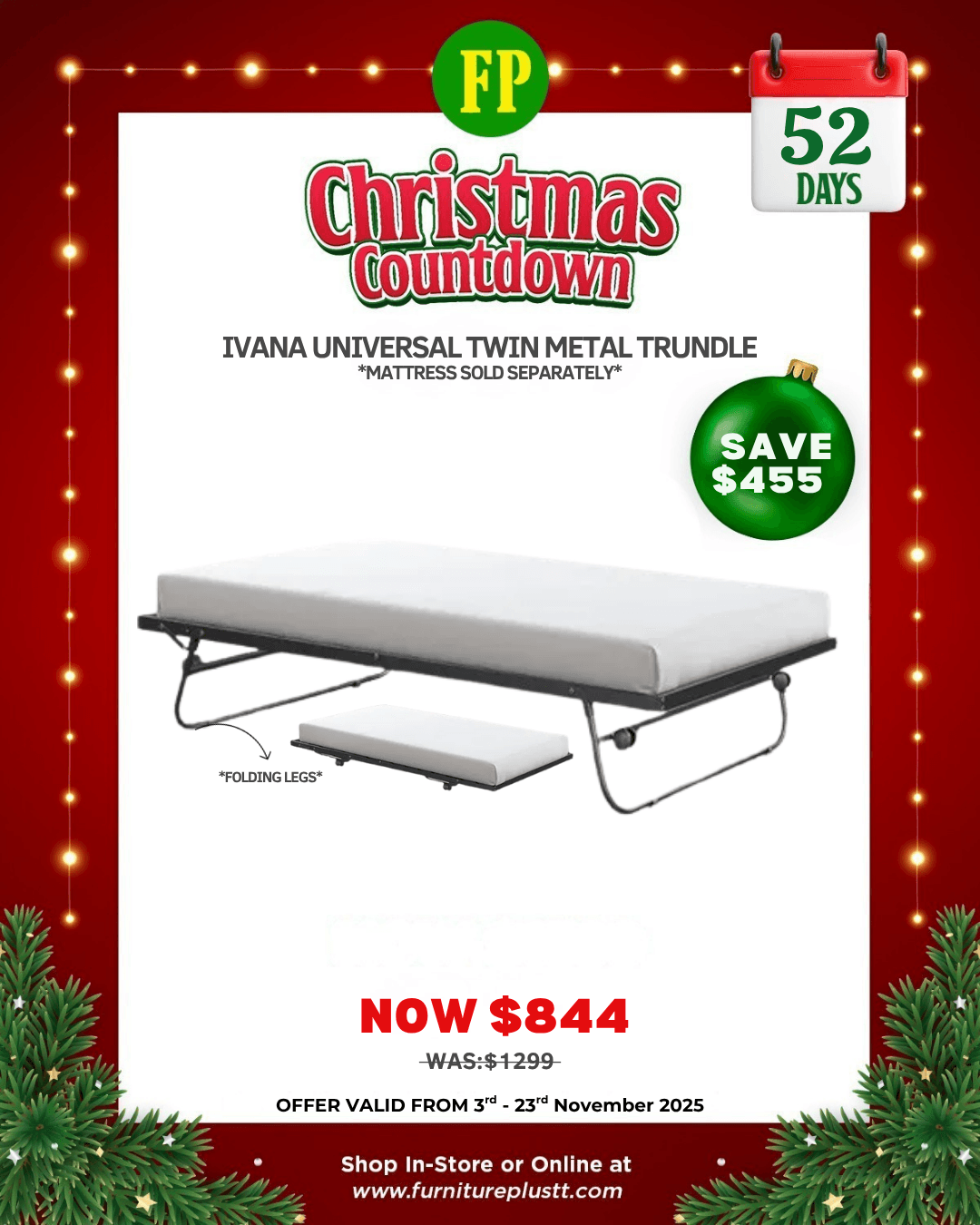 SaleFrom: TT$ 1,299 Original price was: TT$ 1,299.TT$ 844Current price is: TT$ 844.Weekly on HP TT$ 11Ivana Universal Twin Metal TrundleAdd to cart