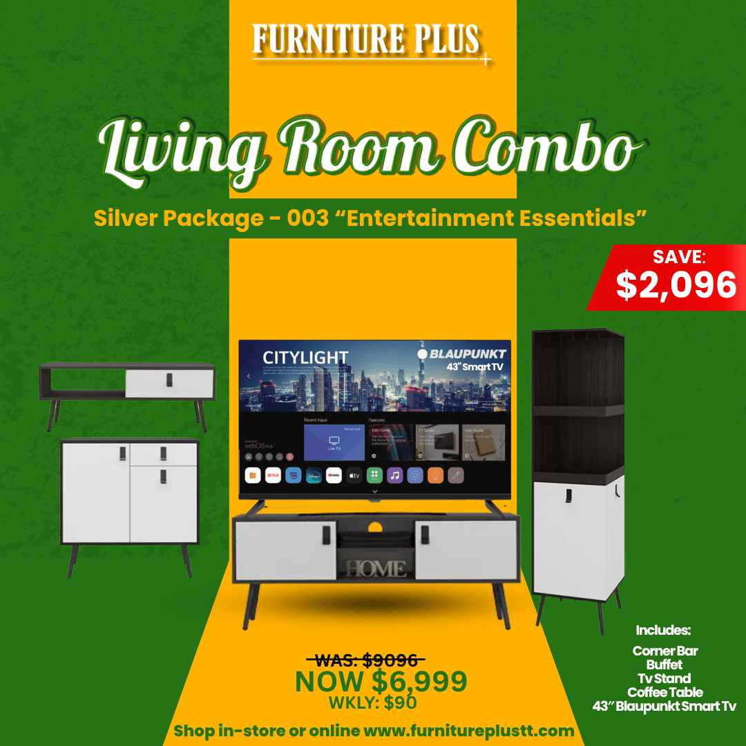 SaleFrom: TT$ 9,095 Original price was: TT$ 9,095.TT$ 6,999Current price is: TT$ 6,999.Weekly on HP TT$ 90Silver Combo Package 003 Living RoomAdd to cart