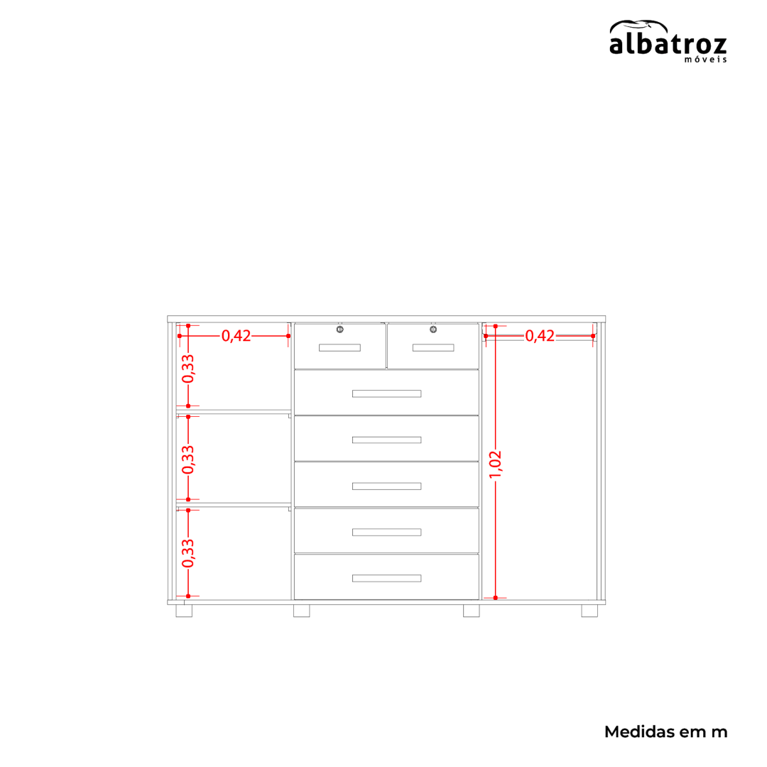 - 7 drawers with telescopic slides.